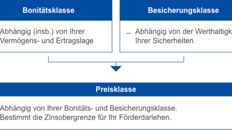 - passt die Zinshöhe an die wirtschaftlichen Verhältnisse (Bonität) und die Besicherung der Antragsstellenden (Sicherheiten) an, und