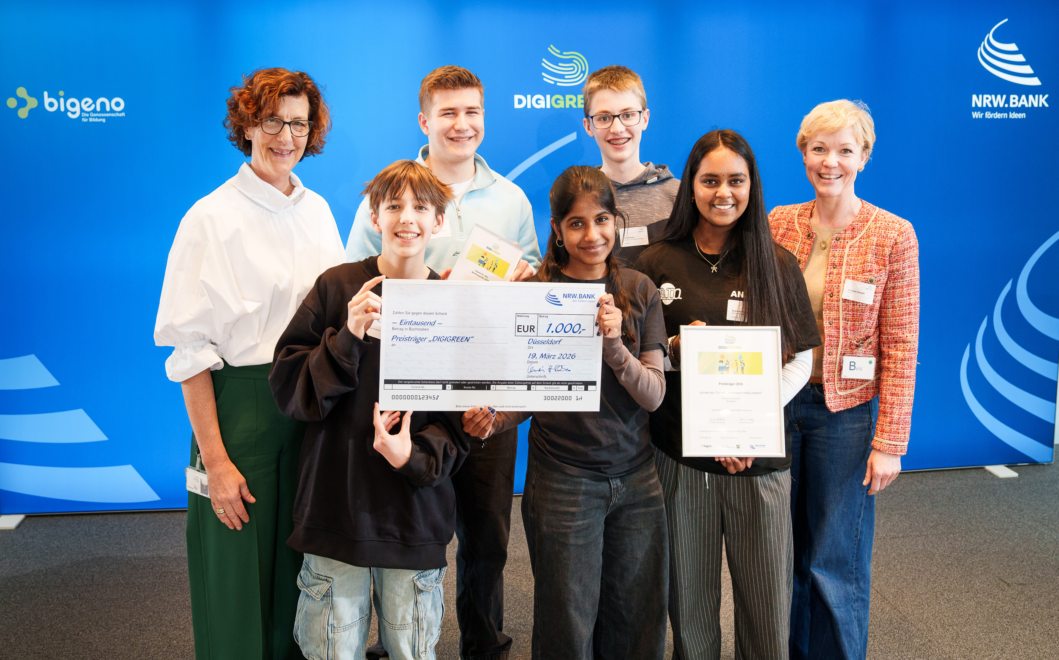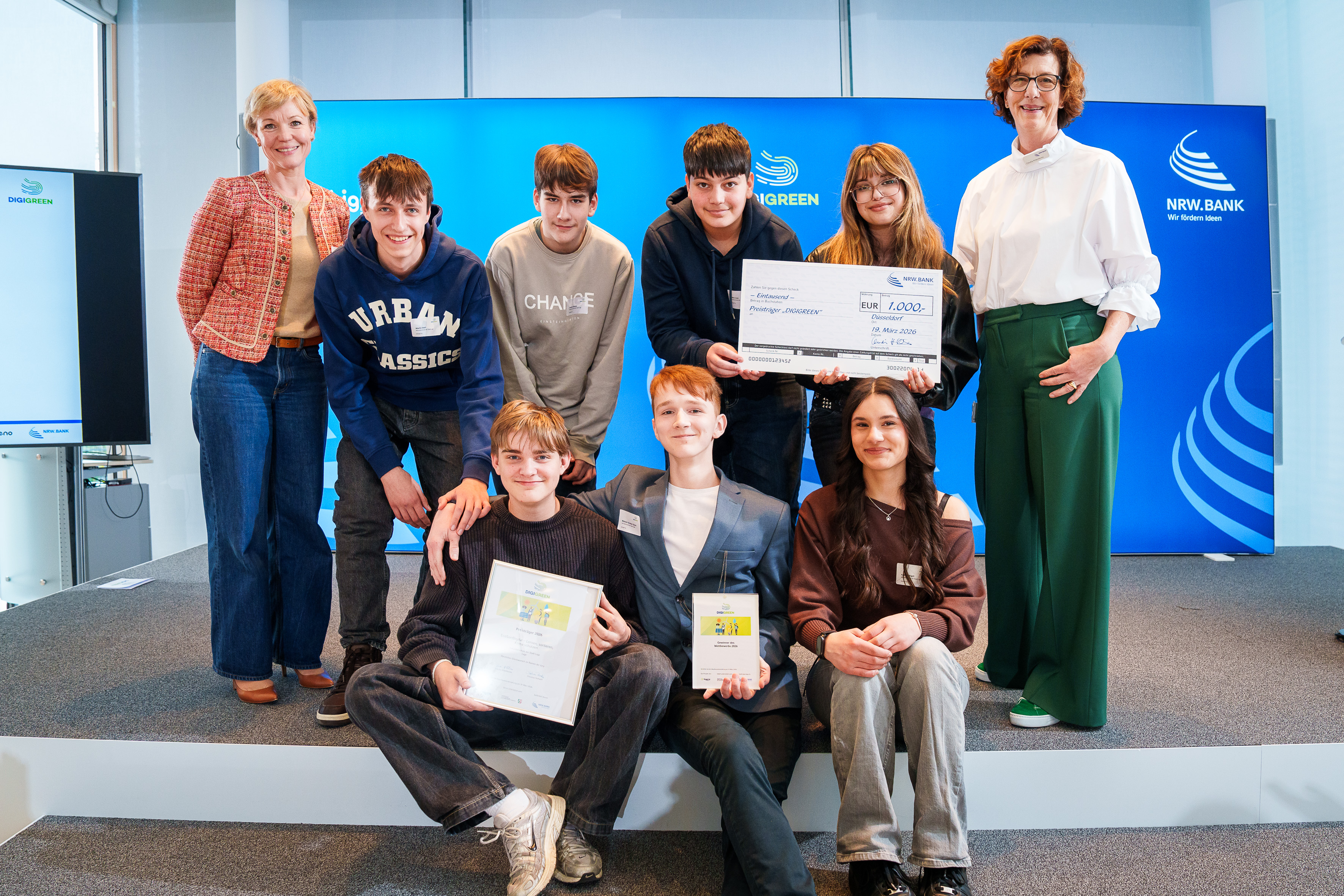 „Die Projekte der Schülerinnen und Schüler haben gezeigt, dass Klimaschutz machbar ist und Digitalisierung ein zentraler Teil der Lösung sein kann. Besonders beeindruckt hat mich das Engagement und die Energie, mit denen die Teams ihre Ideen vorangetrieben haben“, sagt Claudia Hillenherms, Mitglied des Vorstands der NRW.BANK. „Denn nicht gute Ideen allein, sondern der Mut, sie umzusetzen, macht den Unterschied. Deshalb unterstützen wir DIGIGREEN. Nachhaltiger Wandel beginnt dort, wo junge Menschen Verantwortung übernehmen.“