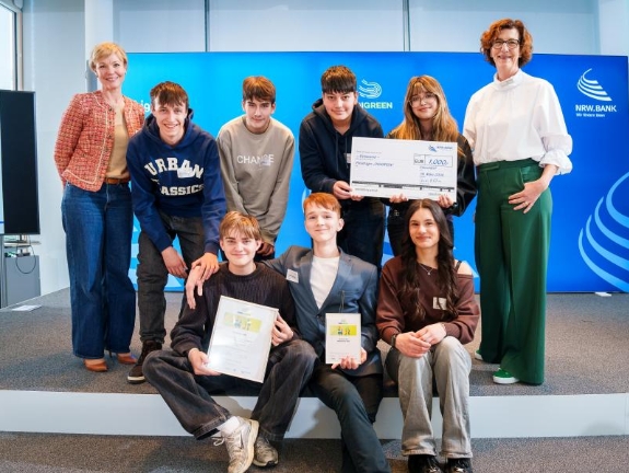 Im Sommer 2025 hatte die NRW.BANK den Wettbewerb gemeinsam mit der bigeno zum dritten Mal ausgelobt. Mitmachen konnten Schülerinnen und Schüler der Klassen 5 bis Q2 aller Schulformen in NRW. Aus allen Einreichungen wählte eine Jury die zehn besten Projektideen aus. Diese unterstützte die Förderbank für Nordrhein-Westfalen mit jeweils 700 Euro bei der Vorbereitung auf den Wettbewerb. Bei der heutigen Abschlussveranstaltung präsentierten neun Klassen ihre Ideen im Foyer der NRW.BANK.