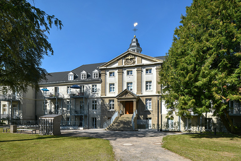 Das 1844 erbaute Kloster ist das markanteste Wahrzeichen der Stadt Rhede. Bis Anfang der 1980er Jahre war es Heimat der Steyler Missionsschwestern, die es bewirtschafteten und junge Frauen in der Hauswirtschaft ausbildeten. Nachdem die Akademie Klausenhof das Kloster 1983 für einen symbolischen Euro übernommen hatte, fiel es in einen Dornröschenschlaf – die Nutzung war aufgrund der maroden Bausubstanz nur noch eingeschränkt möglich. Im Jahr 2013 begannen die intensiven Planungen für eine umfassende Sanierung und Umnutzung, 2020 starteten die Bauarbeiten. „Ziel war es, das Kloster als lebendigen Treffpunkt für unterschiedliche Generationen und soziale Gruppen wiederzubeleben“, sagt Astrid Vogell, Vorstand der Stiftung Akademie Klausenhof. „Mit diesem inklusiven Konzept ist es uns gelungen, das für die Region bedeutende Haus zu erhalten und gleichzeitig Raum für die Menschen von heute zu schaffen.“