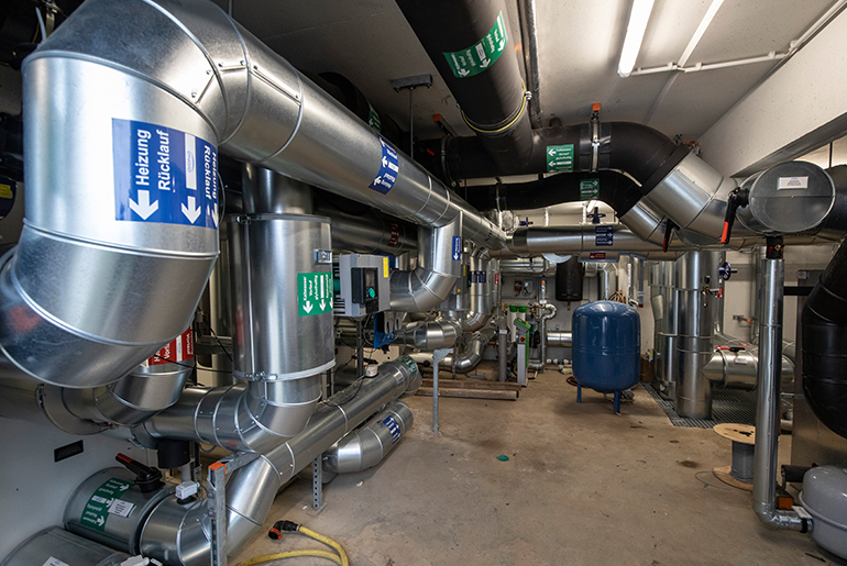 Ein weiterer großer Posten der Modernisierungsarbeiten entfiel auf die technische Gebäudeausstattung. Hierzu zählen auch Komponenten wie Sensoren und eine digitale Steuerung der Heizungs- und Lüftungstechnik, die die ressourcenschonende Wärmeversorgung unterstützen, damit nur so viel Energie verbraucht wird, wie wirklich nötig ist.